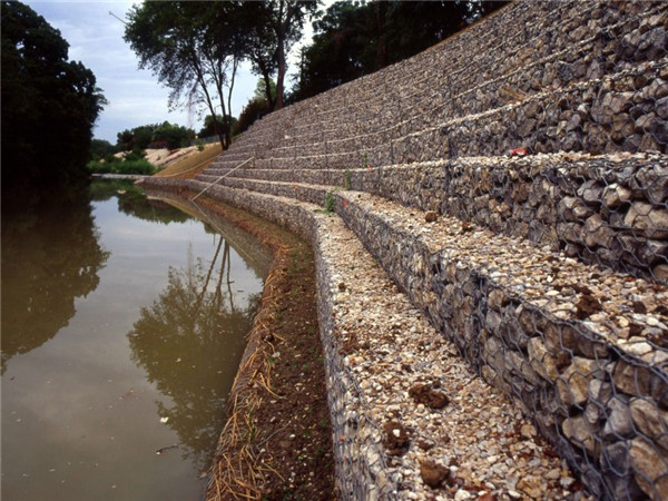 格賓石籠是格賓箱內(nèi)填滿適當(dāng)尺寸的毛石或塊石構(gòu)成。格賓網(wǎng)箱通過(guò)六張采用高強(qiáng)度的鍍鋅低碳鋼絲由機(jī)械編織成的雙絞六角形鋼絲網(wǎng)拼成。鋼絲由錘煉過(guò)且熱鍍鋅以符合國(guó)際標(biāo)準(zhǔn)的軟鋼所做成,雙絞六邊形網(wǎng)及高品質(zhì)的鍍鋅網(wǎng)線決定了格賓網(wǎng)箱的優(yōu)良品質(zhì)。雙絞方式將線綁在一起形成網(wǎng)狀物,如此即使一兩條線斷了,網(wǎng)狀物也不會(huì)被解開。鍍鋁、鋅保護(hù)網(wǎng)線長(zhǎng)期免于氧化的作用