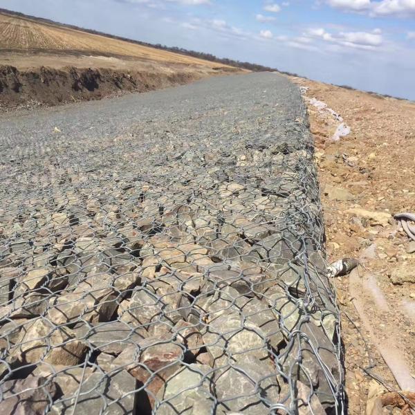 雷諾護(hù)墊是指由機(jī)編雙絞合六邊形金屬網(wǎng)面構(gòu)成的厚度遠(yuǎn)小于長(zhǎng)度和寬度的墊形工程構(gòu)件,其中裝入塊石等填充料后連接成一體,成為主要用于水利堤防、岸坡、海曼等的防沖刷結(jié)構(gòu),具有柔性、對(duì)地基適應(yīng)性的優(yōu)點(diǎn)。