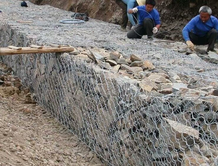 鉛絲籠也叫鉛絲石籠是因為編織的金屬線材像鉛絲,編織的結(jié)構成角形網(wǎng)(六角網(wǎng))制成的網(wǎng)箱