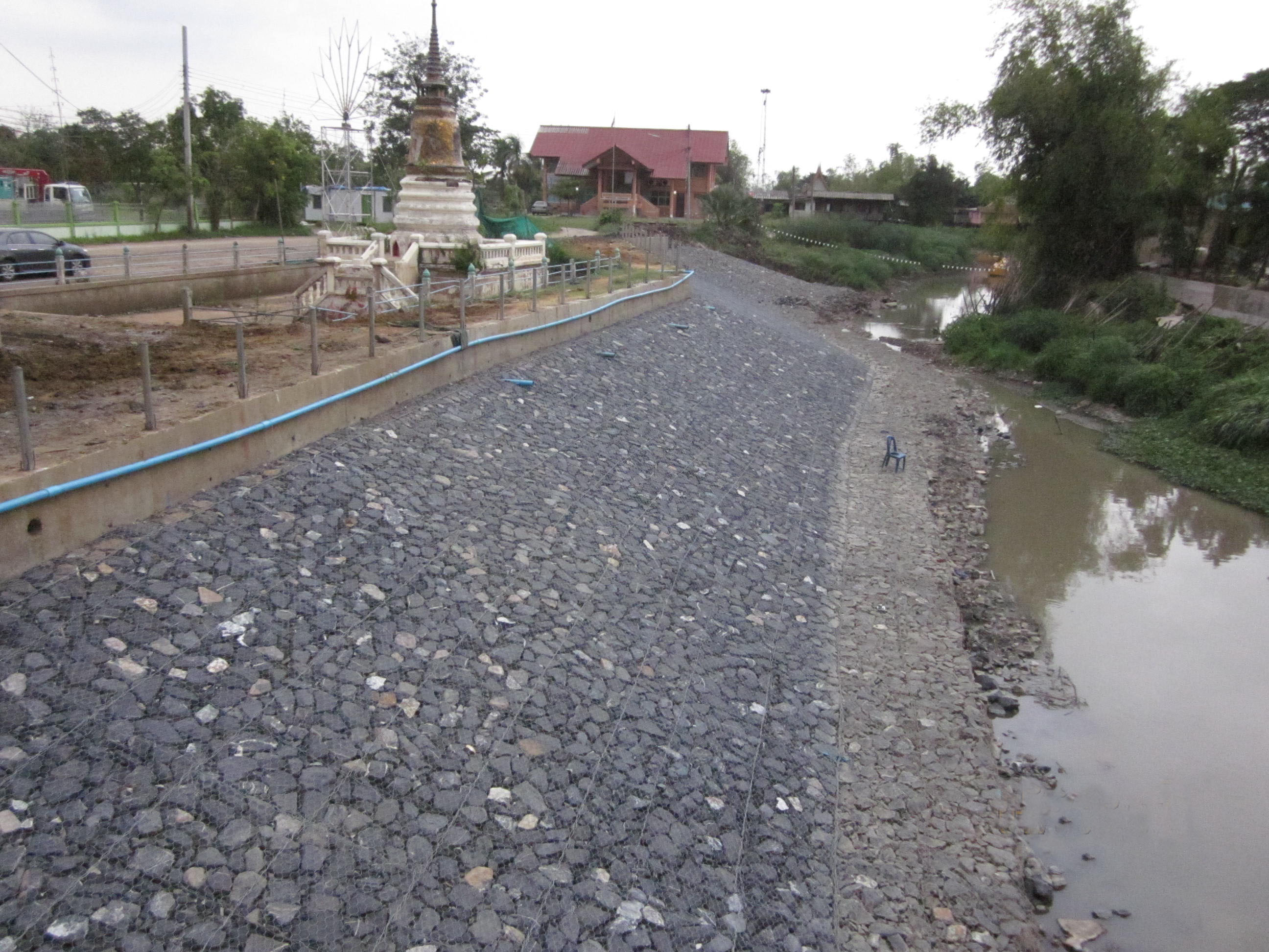 綠濱墊主要用于防洪防汛工程。起初人類直接把石頭扔入河里,河流湍急,石頭容易被沖走,后來用裝著石頭的袋子扔入河中,袋子不太結(jié)實,后來演變成為編制型的石籠網(wǎng)。