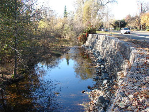 格賓網(wǎng)箱擋土墻縫隙間縫終會(huì)被土填充(人工或自然),植物會(huì)逐漸長(zhǎng)出,實(shí)現(xiàn)工稈措施和植物措施相結(jié)合,亦綠化美化景觀,形成一個(gè)柔性整休護(hù)面,回復(fù)工稈的自然牛態(tài)。