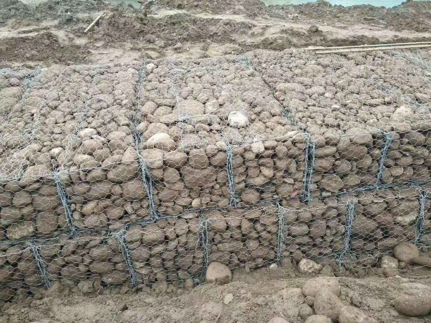 箱型石籠由大規(guī)格六角網(wǎng)聯(lián)結(jié)而成,施工中只需將石塊裝入籠中封口即可。