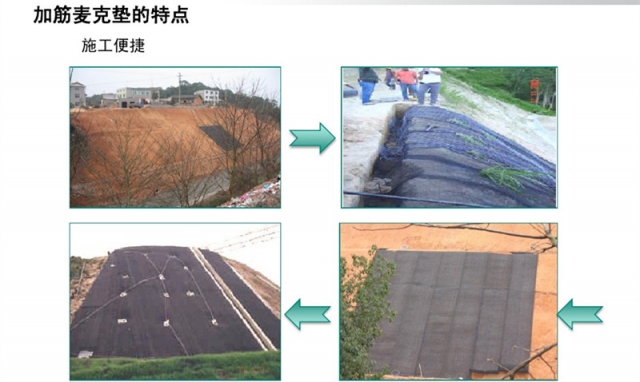 施工方便:加筋麥克墊可按設(shè)計(jì)意圖,工廠化生產(chǎn)制作出半成品,施工現(xiàn)場(chǎng)則按設(shè)計(jì)圖進(jìn)行組裝定型,操作簡(jiǎn)便、受氣候干擾小,且適宜于機(jī)械化操作,既可保證施工質(zhì)量又可加快工程進(jìn)度。