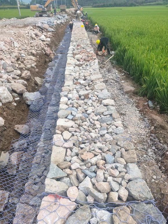 格賓網(wǎng)是金屬線材編織的角形網(wǎng)(六角網(wǎng))制成的網(wǎng)箱,使用的金屬線徑是根據(jù)六角形的大小而不同。格賓網(wǎng)重力式擋墻、護(hù)坡具有工法操作簡(jiǎn)便、工序少、施工效率且效果易于保證。格賓網(wǎng)結(jié)構(gòu)具有柔韌性強(qiáng)、透水性能好、經(jīng)久耐用、利于植被生長(zhǎng)、造價(jià)低等特性,近年來逐漸在我國河道治理、邊坡防護(hù)等工程中廣泛應(yīng)用。