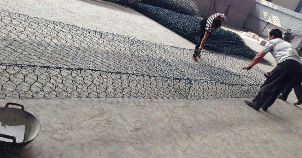 雷諾護墊箱是用鋼絲通過專用設備生產(chǎn)而成。在編織工藝中采用的是雙絞合六邊形金屬網(wǎng)格,因為采用了這種特殊的編織方式,單個網(wǎng)格在發(fā)生破損時,都不會引發(fā)相鄰的網(wǎng)格的破損。