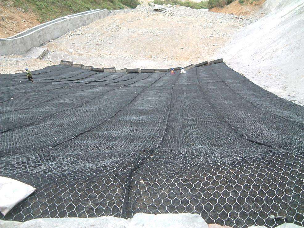 5、加筋麥克墊的鋼絲具有一定的抗拉強(qiáng)度,不易被拉斷,填充料之間又充滿了空隙,具有一定的適應(yīng)變形的能力。當(dāng)?shù)鼗闆r發(fā)生變化時(shí),如發(fā)生不均勻沉降、地震等,箱內(nèi)填充料受箱籠的約束不會(huì)跑到箱籠外,而會(huì)自行調(diào)整形成新的平衡;又因箱籠系柔性結(jié)構(gòu),因此,防護(hù)工程表面可能會(huì)發(fā)生小的變異,但不會(huì)發(fā)生裂縫、網(wǎng)片被拉斷從而造成防護(hù)體被破壞的現(xiàn)象。