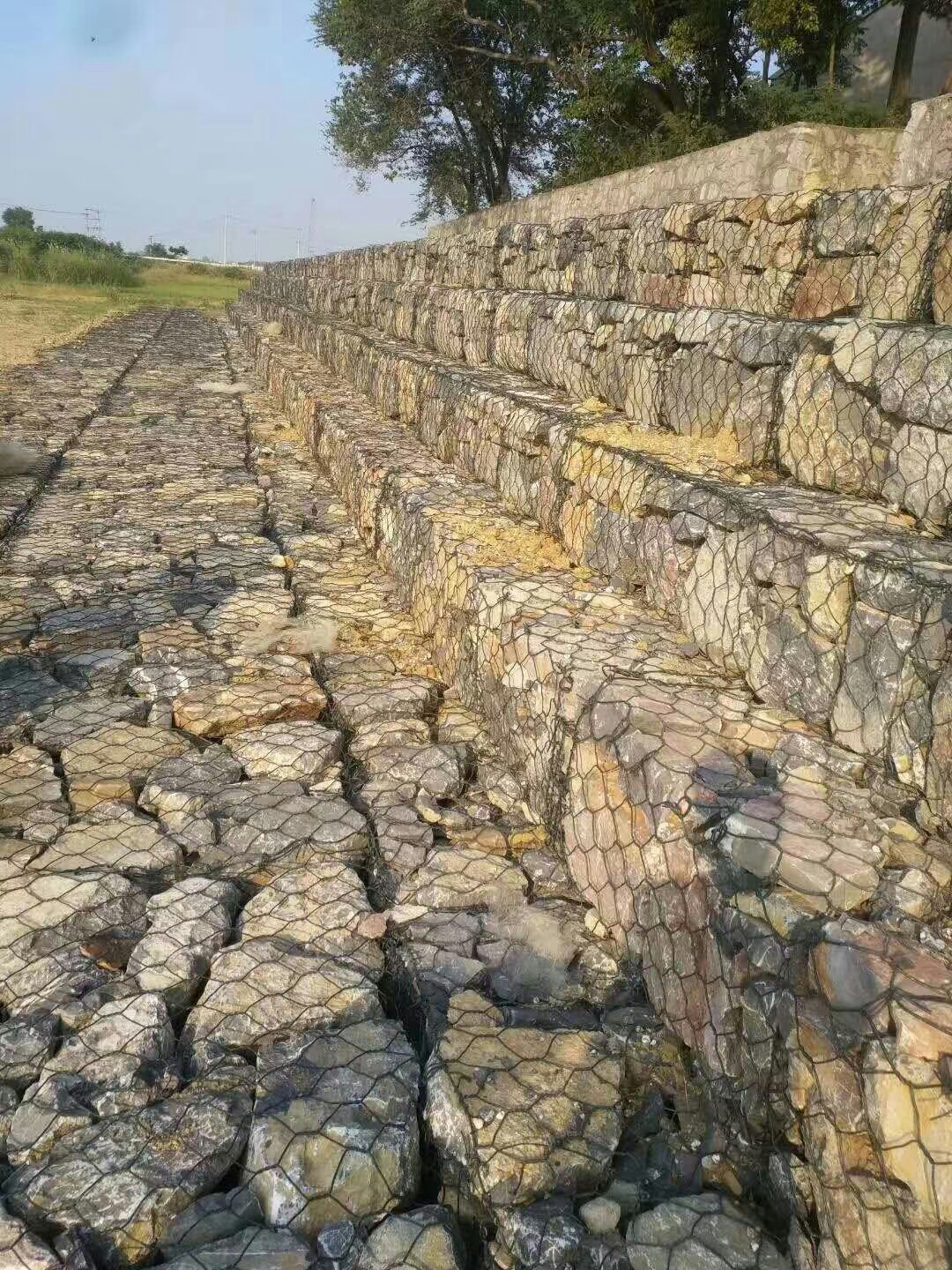 賓格網(wǎng)防護(hù)體可按設(shè)計要求,進(jìn)行工廠化生產(chǎn)制作出半成品,施工現(xiàn)場僅需組裝定型,灌充填料,操作簡便,尤其是受氣候因素干擾小,適宜于機械化施工。