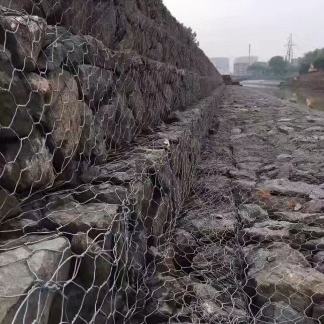 固濱籠(又稱固濱石籠、蜂巢格網(wǎng)、雙絞格網(wǎng)、多絞格網(wǎng))石籠防護工程技術(shù)是指由專用機械將涂塑或不涂塑(PVC樹脂)的熱鍍鋅鋁低碳鋼絲編織成格賓網(wǎng)片,然后將其裁剪、拼裝成符合設(shè)計要求的格賓網(wǎng)箱籠,用塊石等填滿后用于堤防、河岸、路基的防護。格賓石籠防護屬于柔性防護工程,有利于保護河道、堤防岸坡的安全穩(wěn)定,可實現(xiàn)水土自然交換,增強水體自凈能力,同時又可以實現(xiàn)墻(坡)面植被綠化,使工程建筑與生態(tài)環(huán)境保護達到有機結(jié)合。