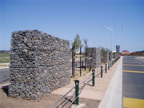 格賓網(wǎng)能有效制止海洋風(fēng)浪對(duì)岸邊沖刷浸泡后造成的潰岸、退岸,它是用鋼絲(8#線)編制成網(wǎng)片,按設(shè)計(jì)要求尺寸在岸邊擺放,裝入塊石封閉成石籠,石籠與石籠連結(jié)成排,覆蓋著被海水沖刷的岸坡(陸上和水下),起著防水沖刷護(hù)岸固腳的功效,它是目前水利工