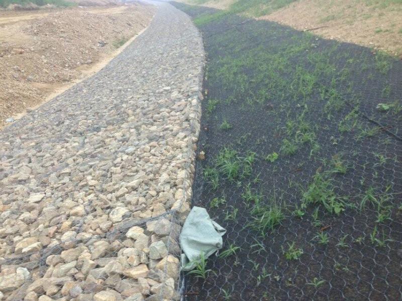 加筋麥克墊一種適用于永久性植被再生的抗沖刷網(wǎng)狀結(jié)構(gòu),由六邊形雙絞合金屬網(wǎng)及三維材料復(fù)合構(gòu)成,兼具土工材料及格網(wǎng)的優(yōu)點(diǎn)。土工材料為聚丙烯材質(zhì),格網(wǎng)鋼絲通常選用防腐性能好的鍍10%鋁鋅合金鋼絲。