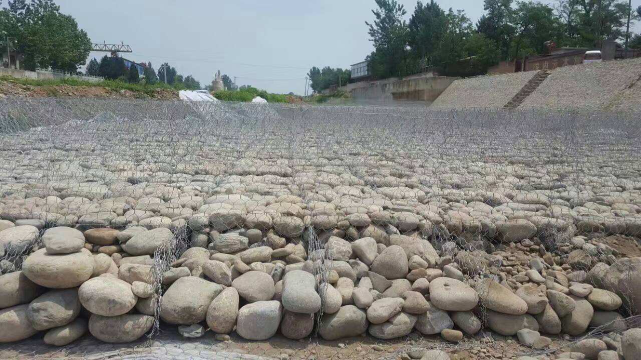 安裝及材料:在每個(gè)護(hù)墊安裝好后,將雷諾護(hù)墊放在指定位置,再將各個(gè)網(wǎng)墊連接起來。為了保持整體架構(gòu)便于連接,可以空箱連接后在裝石料。連接時(shí)我們提供綁絲或者環(huán)形緊固絲。護(hù)坡時(shí)需用與坡體垂直寬的雷諾護(hù)墊。除了用于河渠緩坡外,雷諾護(hù)墊還可以用于陡坡中。用于陡坡防護(hù)時(shí),要在上層底板上每2m或按工程需求楔入硬木楔。空雷諾護(hù)墊需小心安置組裝。