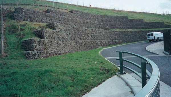 綠格網(wǎng)箱可用做于擋土墻和鋪設(shè)的護(hù)坡,網(wǎng)箱內(nèi)的填充料為松散體(硬質(zhì)石塊最佳,也可用一些建筑混凝土殘余料等)。存在較多的孔隙,利于砌體后填土和護(hù)坡下土層中孔隙水的排出,地表水一旦入滲土體中,則可用過砌體較快的排出,有效降低地表水位。綠格網(wǎng)結(jié)構(gòu)在滑坡治理以及泥石流的防治工程中,水及時排出降低了墻破壞的幾率,同時因綠格網(wǎng)擋墻存在縫隙,從根本解決了水浪后退時產(chǎn)生的真空吸力,加上綠格網(wǎng)擋墻表面良好的變形能力能夠有效的緩沖突發(fā)的外力沖擊。