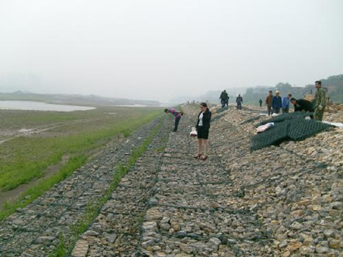 (2)耐久性:加上硬質石塊的機編六邊形低碳鋼絲網(wǎng)面形成一個大的耐久性強的整體。