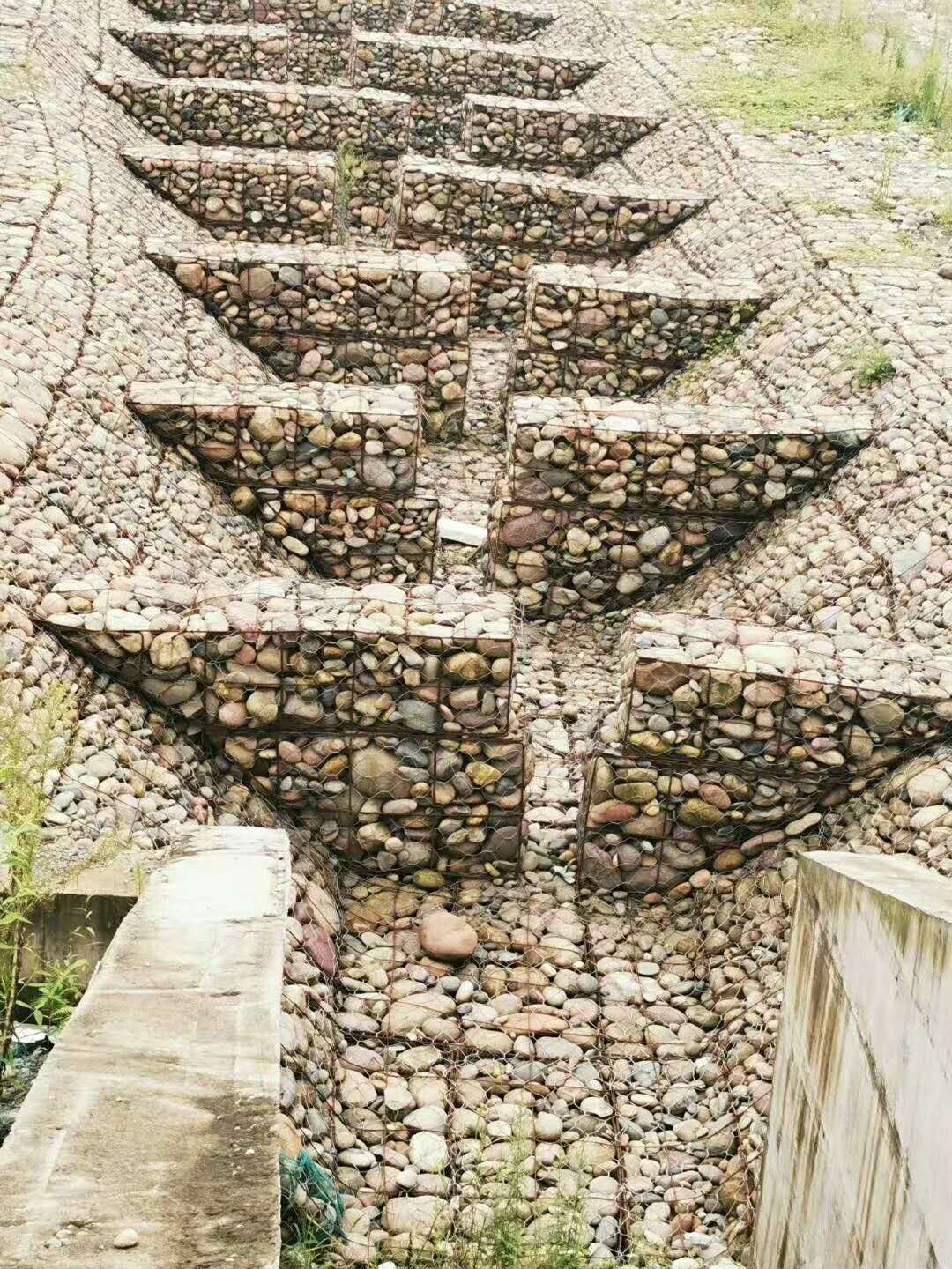 格賓石籠是格賓箱內(nèi)填滿適當(dāng)尺寸的毛石或塊石構(gòu)成。格賓網(wǎng)箱通過(guò)六張采用高強(qiáng)度的鍍鋅低碳鋼絲由機(jī)械編織成的雙絞六角形鋼絲網(wǎng)拼成。鋼絲由錘煉過(guò)且熱鍍鋅以符合國(guó)際標(biāo)準(zhǔn)的軟鋼所做成,雙絞六邊形網(wǎng)及高品質(zhì)的鍍鋅網(wǎng)線決定了格賓網(wǎng)箱的優(yōu)良品質(zhì)。雙絞方式將線綁在一起形成網(wǎng)狀物,如此即使一兩條線斷了,網(wǎng)狀物也不會(huì)被解開。鍍鋁、鋅保護(hù)網(wǎng)線長(zhǎng)期免于氧化的作用